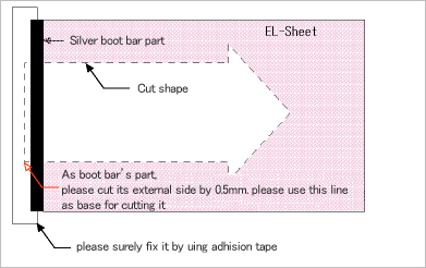 As for EL connection, please use double-side tape after attaching cutting sheet on EL-B rear side like the below figure. |