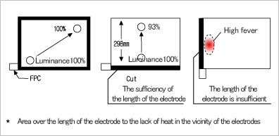 When EL surface is seriously heated, please always change EL shape, voltage, or frequency. Under the extreme condition, EL is melted, which causes short condition. |