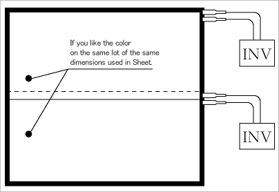 In the case 2 inverters are used in order to gain wanted luminance, please connect one sheet of the same specification and the same mode one by one. Please don¡¯t use two inverters for one sheet. |